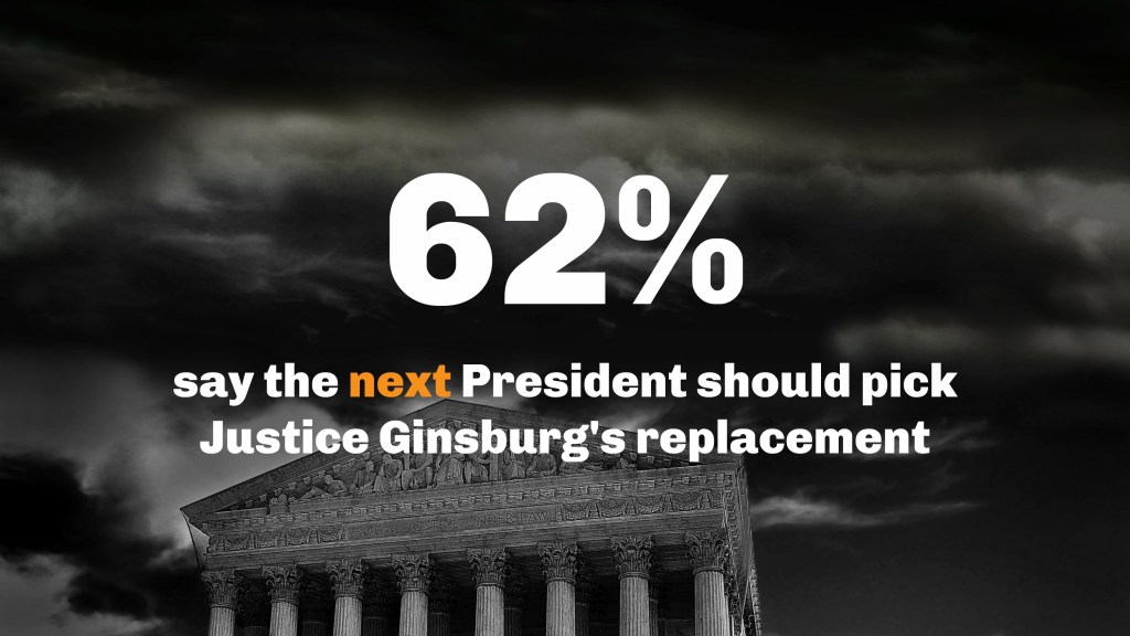 A recent poll showed that sixty-two percent of American adults want the winner of the next election to pick Justice Ginsburg’s replacement.